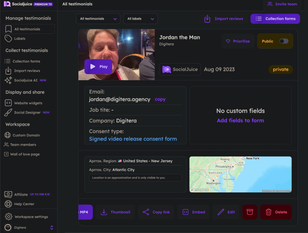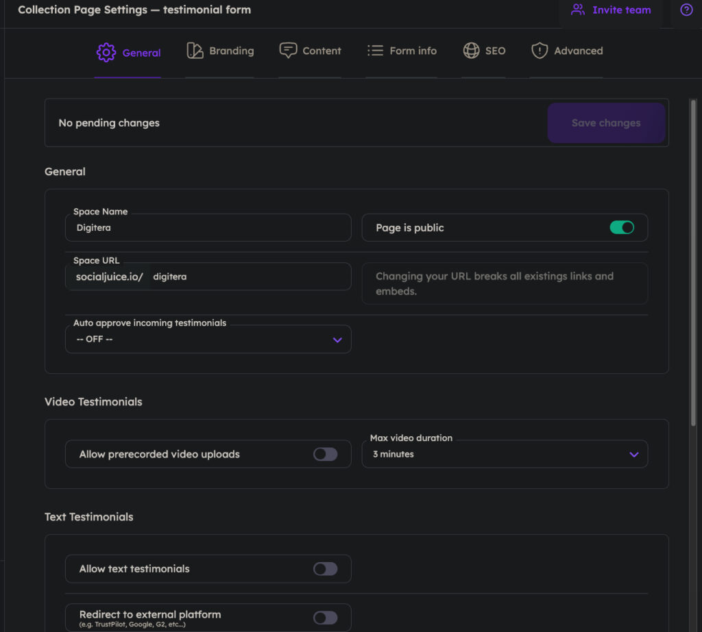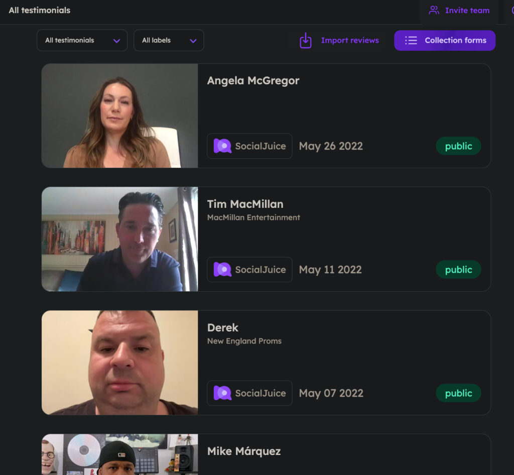 - Once you are inside your SocialJuice backend, you’ll need to go to the section called Collect Testimonials.