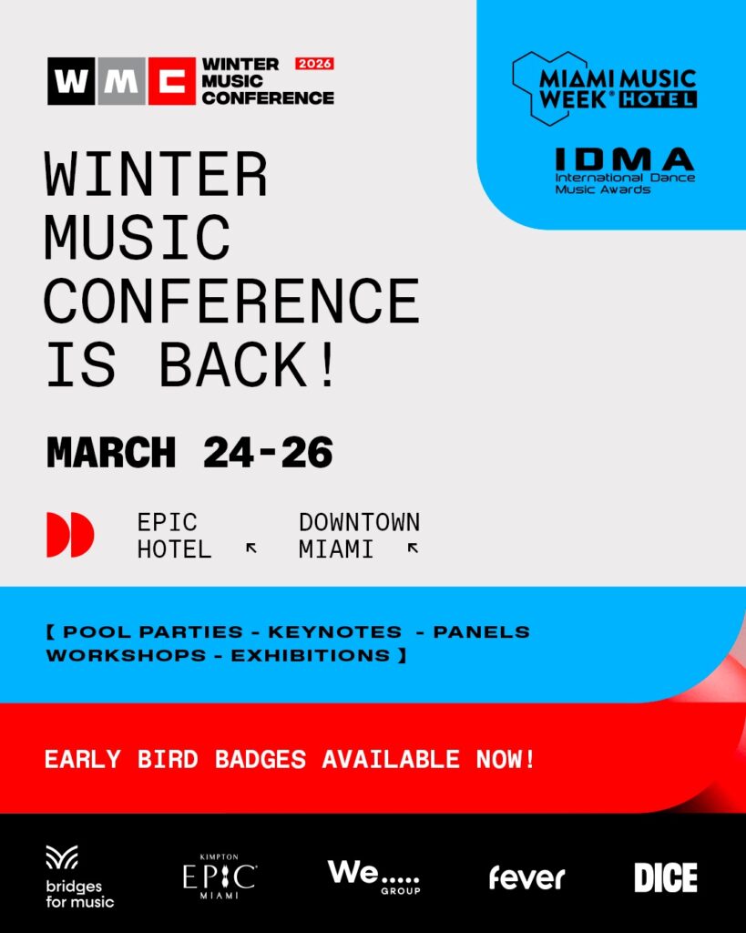Winter Music Conference (WMC), the world’s longest-running electronic music conference, makes its highly anticipated return March 24–26, 2026 in Downtown Miami. For its 36th edition, WMC will be headquartered at the Kimpton EPIC Hotel – designated as the official Miami Music Week Hotel – bringing together global industry leaders, artists, and creators for three days of education, innovation, and celebration.