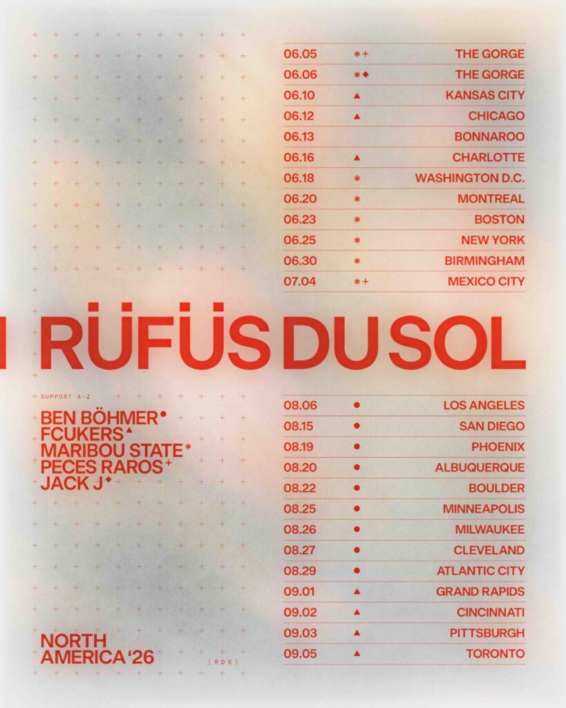 Fresh off a record-setting 2025, RÜFÜS DU SOL has unveiled their most ambitious North American tour yet. Following teaser posts on social media since last week, the trio has announced a sweeping summer itinerary that finds the live electronic powerhouse stepping onto some of the most iconic stages of their career.