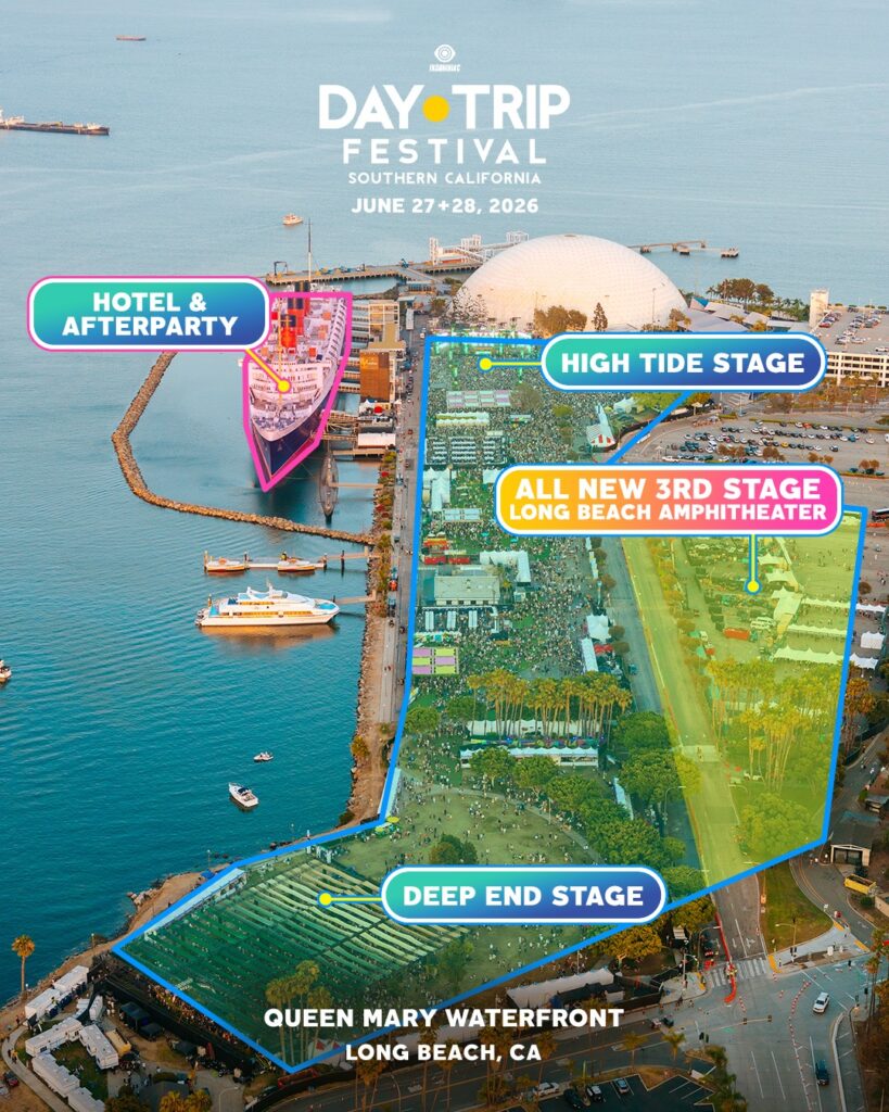 Insomniac has announced a major expansion for the 2026 edition of Day Trip Festival, revealing that the event will debut the brand-new Long Beach Amphitheater as its third stage. Taking place June 27 & 28, 2026 at the scenic Queen Mary Waterfront in Long Beach, California, the two-day celebration of house and techno will be among the first events to activate the highly anticipated venue. With a capacity of 11,000 attendees, the open-air amphitheater will become the largest waterfront music venue on the West Coast, offering panoramic views of the downtown skyline and harbor while significantly expanding the festival’s footprint.